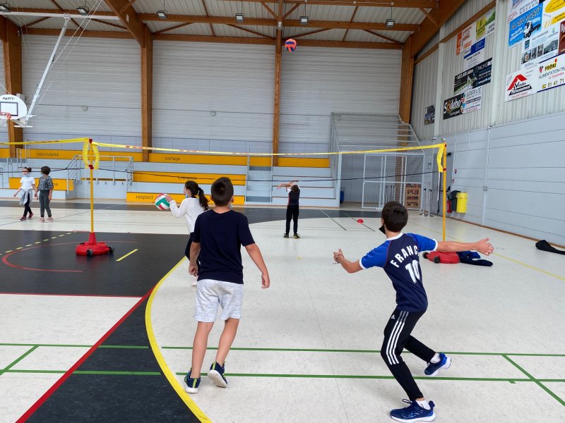 Pendant la dernière période, Gauvin et Hervé nous ont appris à jouer au volley dans la salle de sport. Ils nous ont montré comment jouer : lancer la balle en l’air et la rattraper, lancer la balle au coéquipier et tirer à l’adversaire.